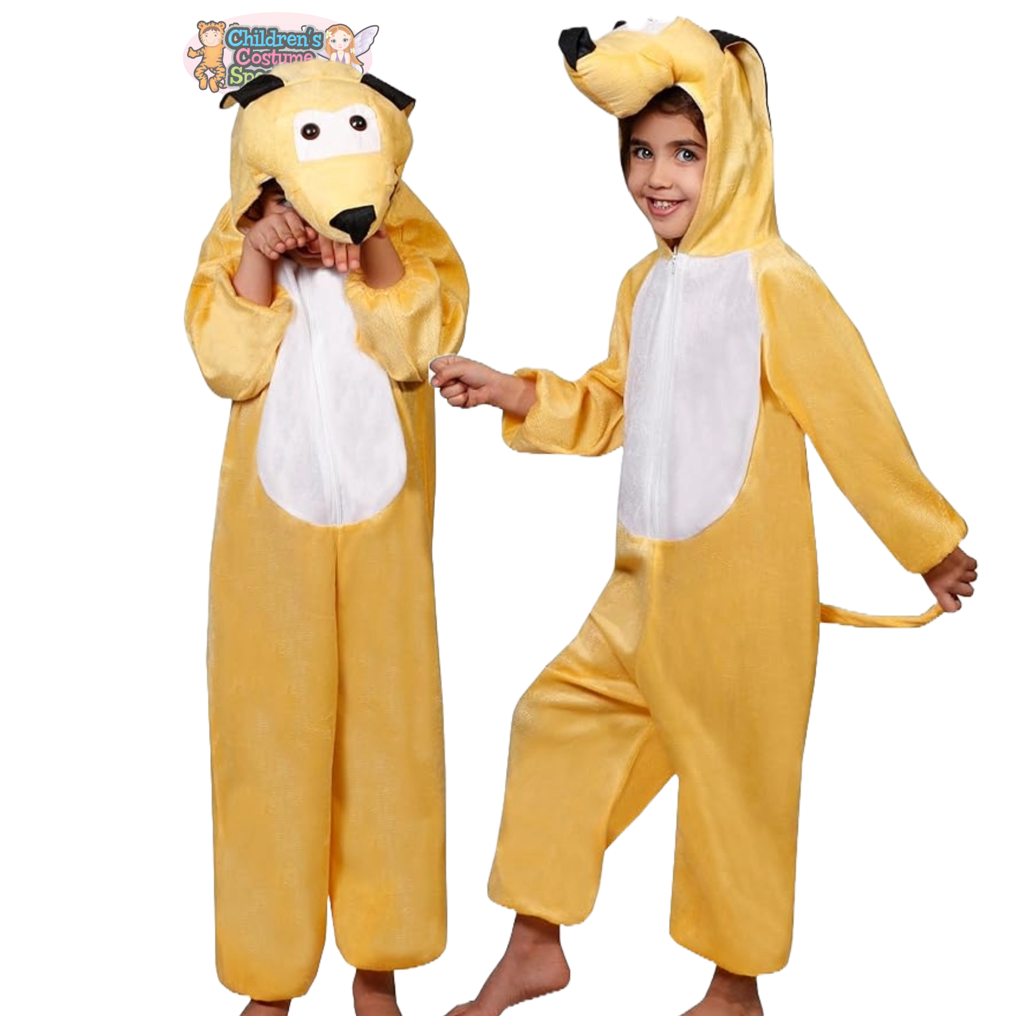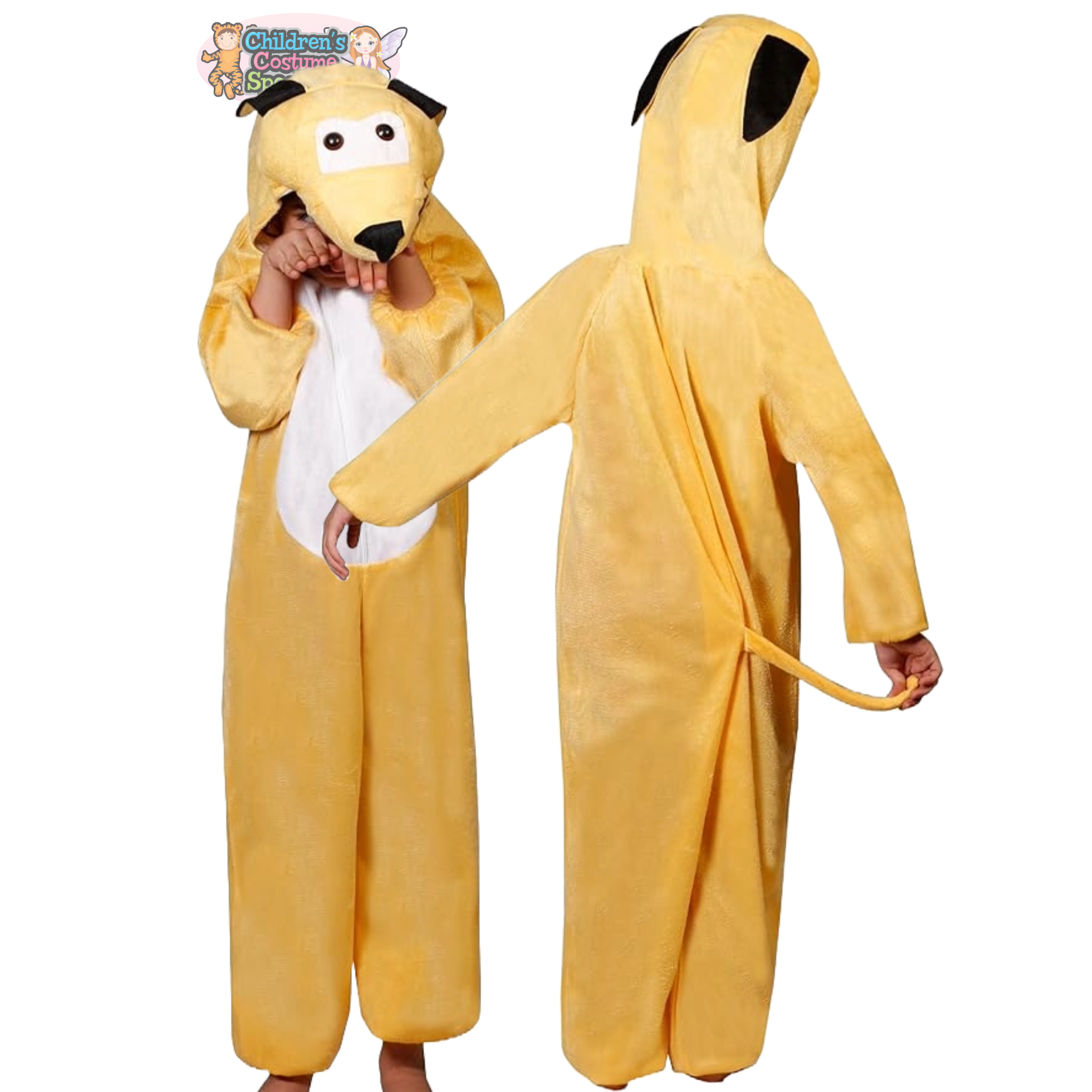 Bring joy and laughter to any party with this soft, cartoon-inspired yellow puppy costume! Designed for comfort and fun, this full-body suit features a cozy hood with floppy ears, playful eyes, and a snout that completes the cheerful puppy look. The white belly patch adds extra cuteness, making it perfect for school plays, Halloween, themed parties, or just imaginative play at home.